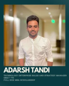 Adarsh came to us with a mountain of baggage – a string of rejections from every US school he applied to despite his extraordinary 770 GMAT score! Over the very first call with Adarsh, it became clear that while he had the potential to excel, he lacked clarity on his progression story, goals and career direction.